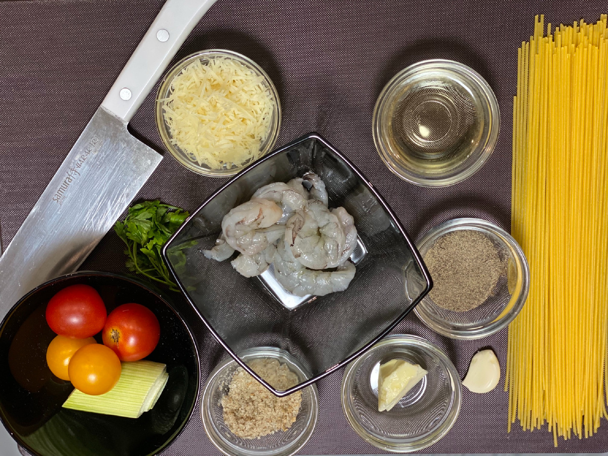 Доброго всем дня! представляю вам свой очередной рецепт Паста 70гр сырая Масло раст 15 Чеснок 4гр Креветка очищенная 70гр Черри 80гр Лук порей 20гр Петрушка 4гр Вино белое сухое 50гр Соль 4 перец ч/м 2 Масло сливочное 30гр Сыр Маасдам 20гр Пасту отвариваем до состояния альденте, на растительном масле обжариваем креветки с чесноком, солим, перчим, добавляем Черри и лук порей, мелкорубленную петрушку, затем вливаем белое сухое вино, выпариваем спирты, соединяем с пастой, добавляем сливочное масло. Взбиваем соус путём интенсивного перемешивания пасты. Выкладываем пасту на тарелку и посыпаем тертым сыром маасдам. Блюдо готово😉 Подробный видно рецепт на моем канале YouTube https://youtube.com/channel/UCC63WEku8CG5RpJqhIwdH9g