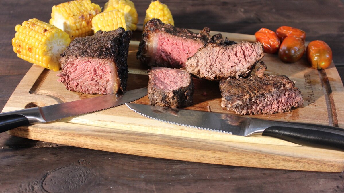 Как правильно приготовить СТЕЙК из говядины на гриле. СТРИПЛОЙН с кофейным вкусом. Для многих стейк - это курятина, свинина , баранина, обжаренная на сковороде или углях. Мы сегодня приготовим говядину- сочную , с насыщенным вкусом. Всё остальное попытки заменить мраморное мясо. Кстати как получают мраморное мясо? Бычков кормят досыта 6 месяцев . Устраивают пир . Например prime- это настоящий эталон , из которого получаются отличные стейки. Вот мы купили говядину , а дальше что? Нужно её правильно нарезать. Какой толщины должны быть куски? Считается , что чем они толще, тем лучше- проще в приготовлении. С тонким стейком много хлопот. Поймать мраморность возможно 2. 5 см. Маринады используют разные я нашла отличный маринад. Я просто очень довольна что приготовила так мясо. Делюсь сливочное масло- 30 гр лук репчатый- 1. 5 ст. ложки чеснок - 1 зубчик крепкий сваренный кофе- 50 мл бальзамический уксус- 1 ст. л сахар- 1 ст. л соль. перец. по вкусу. Мясо солим и перчим с двух ст