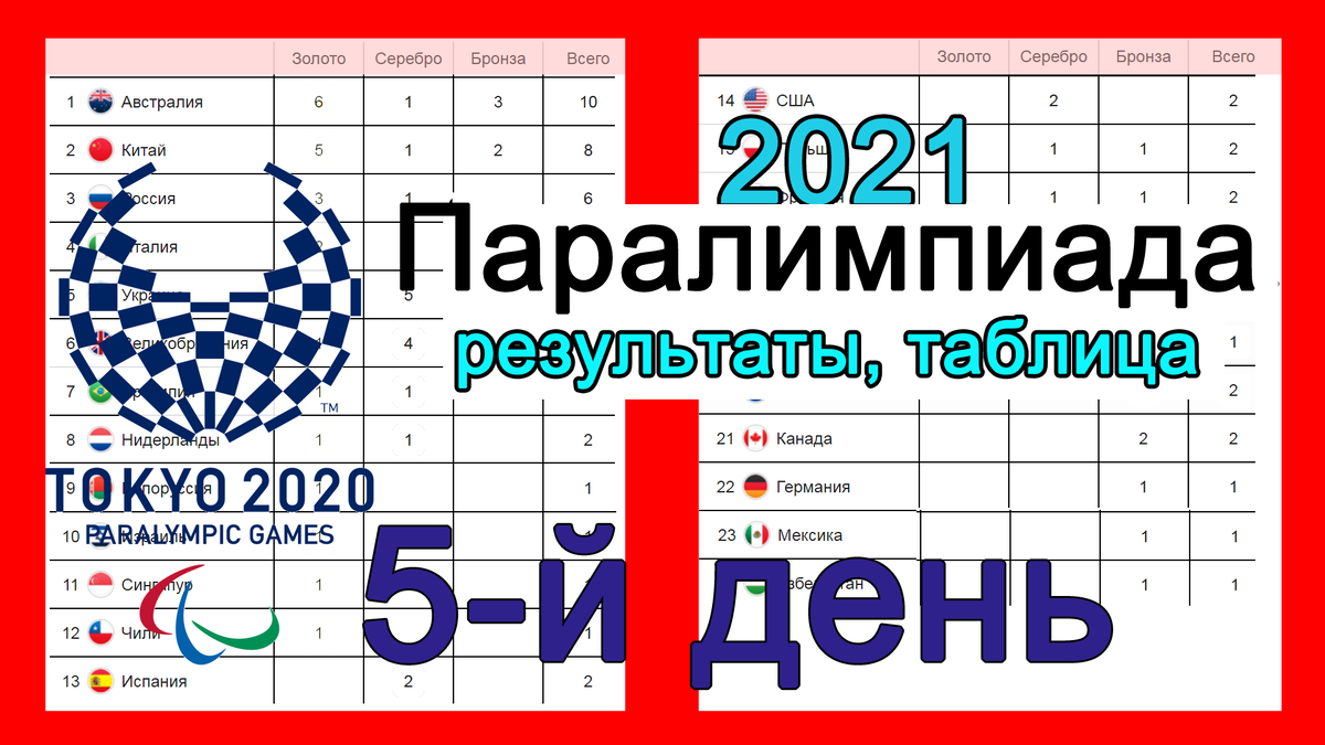 Паралимпийские игры. День 5. Медальный зачет. Результаты. Расписание.