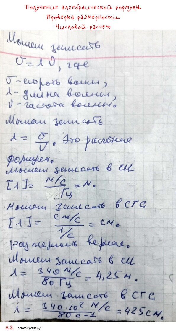 Проверяем выполнение правила размерности в окончательной алгебраической формуле. Числовой ответ получаем в системе СИ и СГС.
