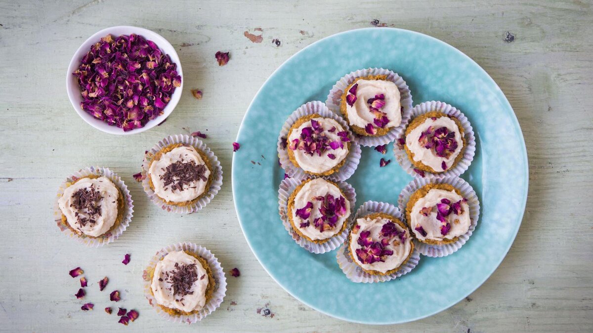 Эти веганские и безглютеновые кексы восхитительно влажные, благодаря их секретному ингредиенту: тыкве с орехами. Тахини и кленовая глазурь - это верхушка сверху.
