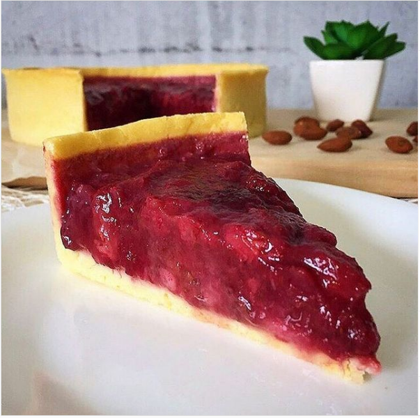 Творог перемешать с яйцом и подсластителем. Добавить муку, разрыхлитель и замесить эластичное тесто. Выложить в форму (d=20cm), сформировать дно и бортики. Выпекать в предварительно разогретой до 180С духовке около 15 минут. Банан и клубнику нарезать на кусочки и проварить до загустения на медленном огне. На готовую основу выложить начинку и отправить в духовку ещё примерно на 25 минут. Готово!