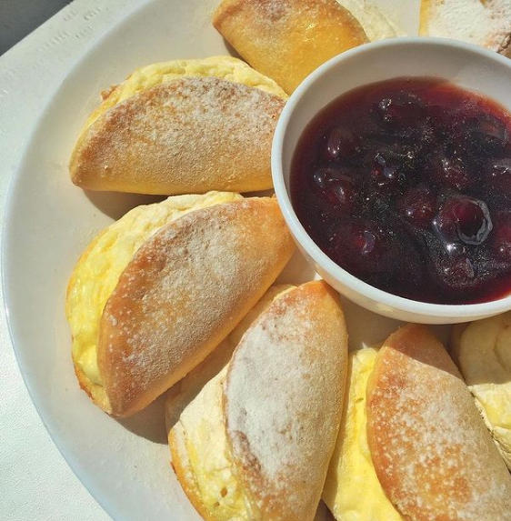 Присыпать рабочую поверхность мукой, раскатать тесто, вырезать с помощью стакана кружки. У меня получилось 9 штук.