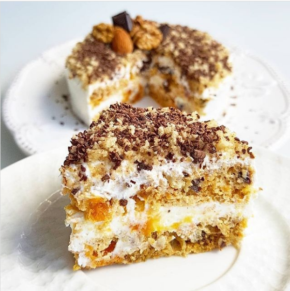 Орехи измельчаем, но на кусочки, а не в муку.