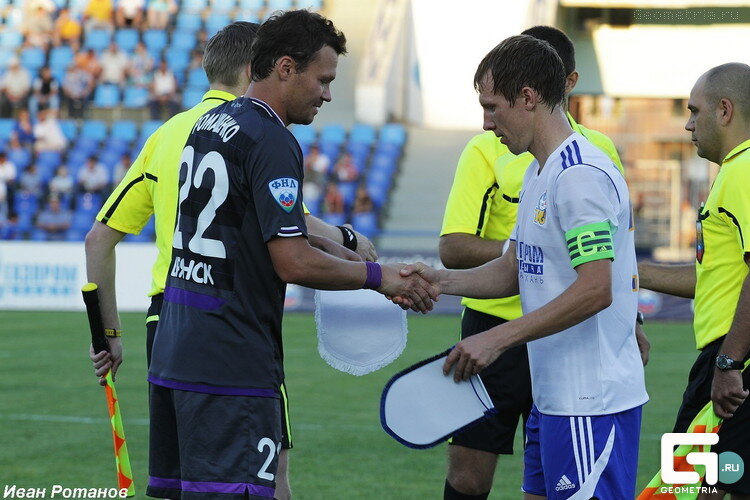 После матча в пору было сетовать на судьбу и откровенное невезение. В который уже раз. Когда не могут отличиться приезжие, берутся за дело свои. Так и получилось на 5-й минуте матча: прострел с фланга, казалось бы, должен был стать «семечками» (по словам Маслоченко) для вратаря, но Алексеев ладошками отбивает мяч в сторону – аккурат туда, куда на подмогу на всех парах мчался Роман Шапкин. Автогол – 0:1. А уже через двадцать минут контратака «Орла» завершилась смачным ударом с ходу. Динамику эпизода «испортил» Алексеев. На этот раз его действия заслужили залп аплодисментов. День 29-е августа по праву можно назвать днём Романа Шапкина. Забив гол в свои ворота, Роман при розыгрышах стандартов неизменно прибегал в чужую штрафную. И очень плодотворно. Для защитника. В первом случае Роман в падении дотянулся ногой до мяча, касанием переправив его в ворота – 1:1. А через три минуты Сантос, получив мяч в центральном круге, сместился к бровке, где накрутил нескольких защитников и недозволенным приёмом был остановлен. Навес партнёра нашёл в штрафной счастливую голову Романа – 2:1. Ликованию трибун не было предела. «Орёл» - принципиальнейший соперник для «Динамо», раздражитель по-хлеще красного полотна. Принципиальность, надо сказать, обоюдная и за две минуты до конца первого тайма комбинация гостей заслуживает самых лестных слов – орловский Алексеев расстрелял в одно касание Алексеева брянского – 2:2. Во втором тайме принялся чудить Фурса. Реакция трибун следовала незамедлительно. Сначала действия московского рефери сопровождал свист и дружное скандирование, а когда рука Фурсы указала на «точку» - с трибун посыпалось: от слов до пластиковых бутылок. В дальнейшем Фурса вовсе выпустил вожжи игры из рук. Внушения динамовских игроков не доходили до ума арбитра, равно как и крики бокового, около минуты кричащего: «Серёжа, Серёжа,…». Букиевский с пенальти устанавливает окончательный счёт в матче – 2:3. А то что остаток матча «Динамо» провело на гостевой половине поля превратилось в формальность на фоне итогового счёта.