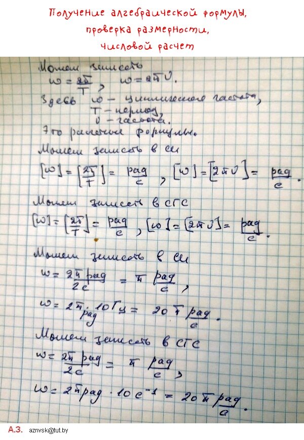 Проверяем выполнение правила размерности в окончательной алгебраической формуле. Числовой ответ получаем в системе СИ и СГС.