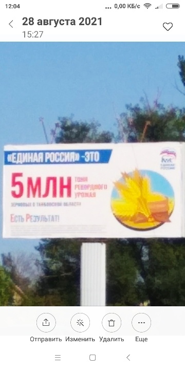 Вчера увидел вот такой вот билборд на выезде из Тамбова: Вот так вот незамысловато шагает "Единая Россия" навстречу парламентским выборам. Это раньше Родина благодарила и награждала за отличные надои и урожаи аграриев. Даже если они были коммунистами или просто беспартийными. Теперь времена изменились, теперь сеет и пашет только "Единая Россия". Такие вот дела. Маленькое резюме: Иногда приходит мысль, что подобные билборды вывешивают сознательно, дабы оттолкнуть избирателей от ЕР. Подписывайтесь на канал, ставьте лайки, делитесь с друзьями и комментируйте прочитанное – ваше мнение очень ценно. Смотрите также: 1. Первые итоги: плавучая АЭС «Академик Ломоносов» на Чукотке. 2. Арктика: красавец синий ледокол... 3. Газпром поднимает цены на газ для Европы.. 4. Росатом: на пути клонирования плавучих АЭС. 5. Росатом делает первые шаги к водородной энергетике. 6. Экспорт: не газом единым.