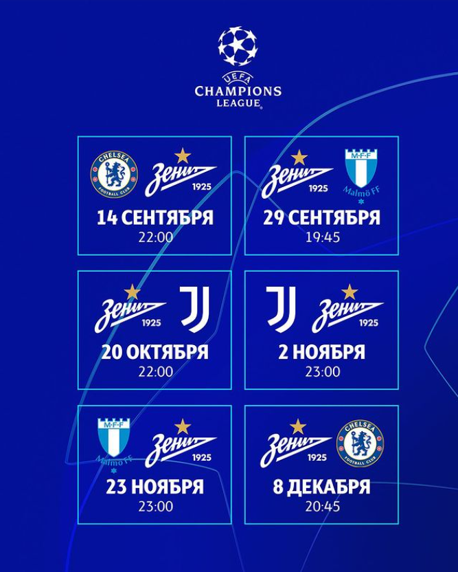 "Зенит" узнал своих соперников по групповому этапу Лиги Чемпионов. С вами “обзор спортивных новостей”, и мне хотелось бы побеседовать о тех командах, которые попались в квартет к нашему российскому коллективу. Напомню, это - "Челси", "Ювентус", и футбольный клуб "Мальме". Давайте их немного сейчас проанализируем. 1. И так, с "Челси" всё более-менее понятно. Это ужас - просто не повезло, "Зениту", по-другому и не скажешь. Во-первых, победитель Лиги Чемпионов, действующий обладатель трофея оказался в нашем квартете. Во-вторых, "Челси", вот именно сейчас, это невероятно опасный клуб, попался бы нам этот "Челси" год назад, или два, была бы другая ситуация, там были бы варианты, потому, что Челси Лэмпарда - это одно, а нынешний "Челси" при Тухеле - это совсем другая песня. Немец Великолепно выстроил команду, она рвёт и мечет, появились и молодые таланты, которые постепенно раскрылись за последние годы. Короче говоря, шансов нет, вот серьезно, единственное, что кто-то из наших руководителей