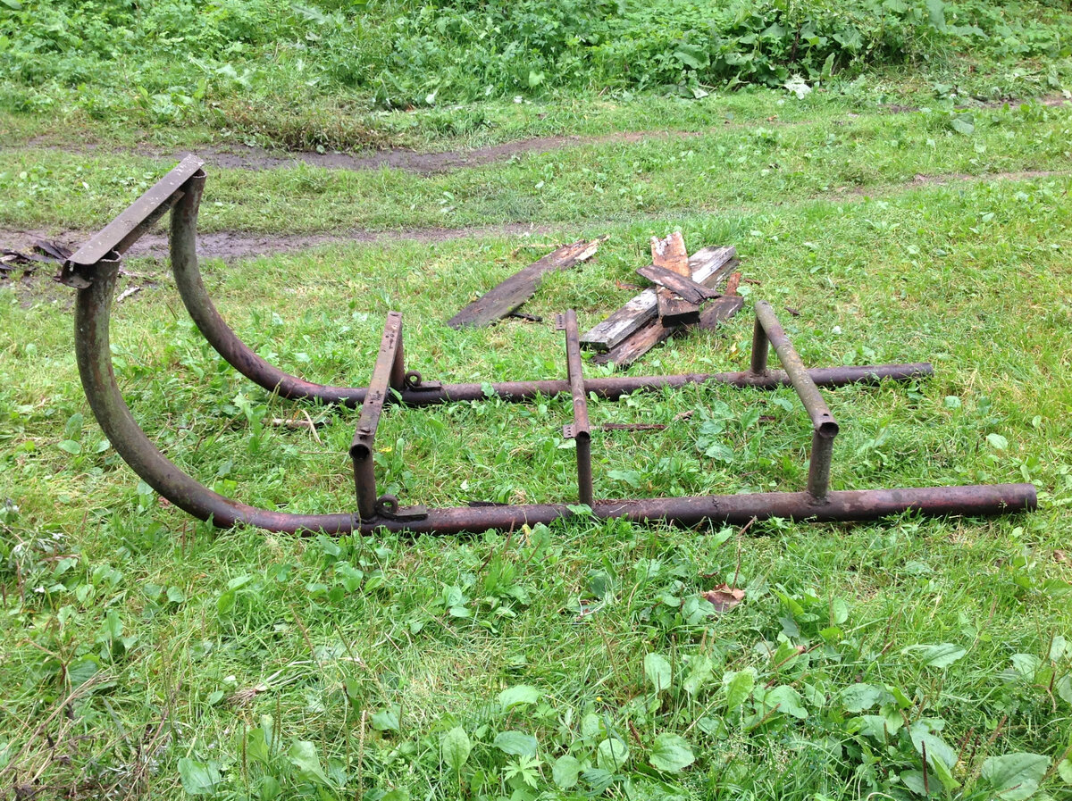 К следующей зиме нашли и купили такие аж за тысячу рублей, и проездили на них три года - они очень легкие, что было плюсом, поскольку наша лошадка была еще молодая. Но были и недостатки - из-за коротких полозьев их заносило на укатанной дороге, и они подскакивали на малейшей кочке, страшно громыхая при этом; кроме того то, что они были полностью металлические, служило плохую службу в сильный мороз - железо просто высасывало тепло даже через несколько покрывал. В прошлую морозную зиму ими было невозможно пользоваться. Боже мой, я лучше сделаю из них шезлонг для Зоны Комфорта. Во время конных работ в одном из соседних сел заметили у хозяев висящие на