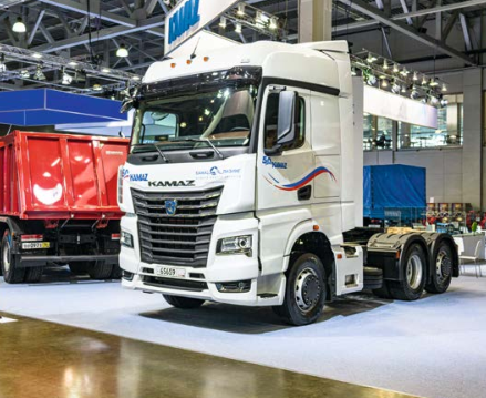 Камский автозавод представил новый седельный тягач КАМАЗ-65659. Новая модель была продемонстрирована на ежегодном мероприятии «День клиента». Автомобиль базируется на новой фирменной платформе K5. КАМАЗ получил колесную формулу 6x2. Установка дополнительной подъемной оси позволила увеличить грузоподъемность автомобиля до 26 тонн. Модель оснащена двигателем КАМАЗ-910 мощностью 450 л.с. На новый КАМАЗ-65659 будет устанавливаться топливный бак объемом 650 литров. Заявленный ресурс мотора 1,2 млн км Кабина оснащена ровным полом и двумя спальными местами. Кресло водителя установлено на пневмоподушке, имеет множество регулировок. Комбинация приборов — классическая, с двумя большими шкалами тахометра и спидометра. Привычного ключа зажигания тут нет — двигатель запускается кнопкой. Центральная консоль повернута к водителю, главное место в ней занимает экран мультимедиа-системы с 10-дюймовым сенсорным экраном. Под ней расположены рукоятки управления климатической системой и музыкой. Новейшие