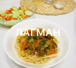 Отварить спагетти.В тарелку положить немного лапши и залить нашим бульоном. Подаём с зеленью!