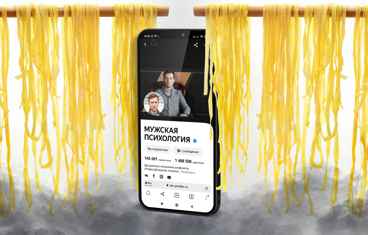 В принципе лапшу я люблю, моя мама хорошо её готовит. Но, что касается психологических, не кулинарных каналов в "Яндекс. Дзен" – то меня от такого блюда воротит. Название канала «Мужская психология» говорит само за себя – подразумевается, что здесь должны были быть обзоры психических функций мужчин, углубленные рекомендации и основанные на научных фактах прогнозы. Это ли мы получаем, сделав переход на канал? Сейчас разберёмся! Что ты за фрукт «М.П.» ? Многообещающее описание. Особенно, что помогает «дорого меняться» понравилось. Какие типы контента представлены на канале: 1. Галереи на черном фоне с историями. А что за истории – а вот такие, «психологические»: - «Вызвал полицию на алкашей во дворе» - О кассирше из Перекрестка - «Муж директор и пьяница». Чувствуете запах? Да и правда аромат желтизны уличных газет ударил в мозг. Смотрим дальше. 2. Короткие видео, в стиле: «Как за минуту бросить курить», «Как избавиться от любого страха», «Как наладить отношения с женой» (7 минут). Мне ка