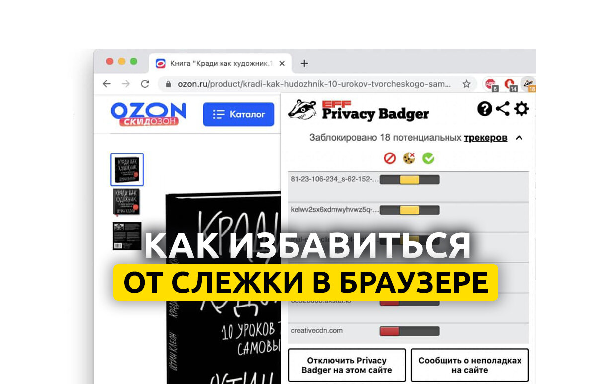 Как избавиться от слежки в браузере. Пока вы посещаете сайты, они собирают о вас много информации — ваш IP, геолокацию, разрешение экрана и другие данные. И присваивают вам уникальный идентификатор, такой же уникальный, как отпечаток настоящего пальца. Это происходит на фоне: вы даже не замечаете этого. Отслеживают вас не сами сайты, а следящие куки и трекеры на них. Так рекламодатели узнают, на какие сайты вы ходите. Бесплатное расширение Privacy Badger автоматически обнаруживает и блокирует эти невидимые трекеры, чтобы вы всегда оставались в безопасности. Плагин обучается в процессе работы и блокирует трекер только после того, как обнаруживает его на трёх разных сайтах. Для рекламодателя вы будто исчезните. Расширение доступно для Chrome, Firefox, Edge и Opera.