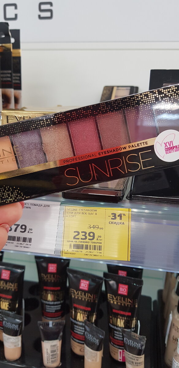 Поскольку выше указанный магазин находится прямо у моего дома, захожу в него часто и часто там можно найти прекрасные косметические бюджетные средства да еще с хорошей скидкой. Вот и в этот раз "пошла за хлебушком" , а пришла с пакетом косметики как уходовой( об этом есть видео на моей страничке), так и с декоративной. А поскольку часто мои дорогие подписчицы пишут, чем можно заменить более дорогие палитры теней, какой хайлайтер выбрать... протестировала и вам показываю. Одна из любимых линеек у компании Eveline , кто смотрит мои ролики не раз видел, что я использую эту палитру в своих макияжах. Тени хорошо пигментированы, не осыпаются. Отличного качества как рефилы с матовыми тенями, так и сияющие оттенки. Они с деликатным сатиновым финишем, имеют тонкий помол. Тени отлично набираются на кисть, переносятся на кожу и тушуются. Не осыпаются и не скатываются, если наносить их на подготовленое веко. Обе палитры рекомендую, все зависит от ваших цветовых предпочтений. Вторая палитра,