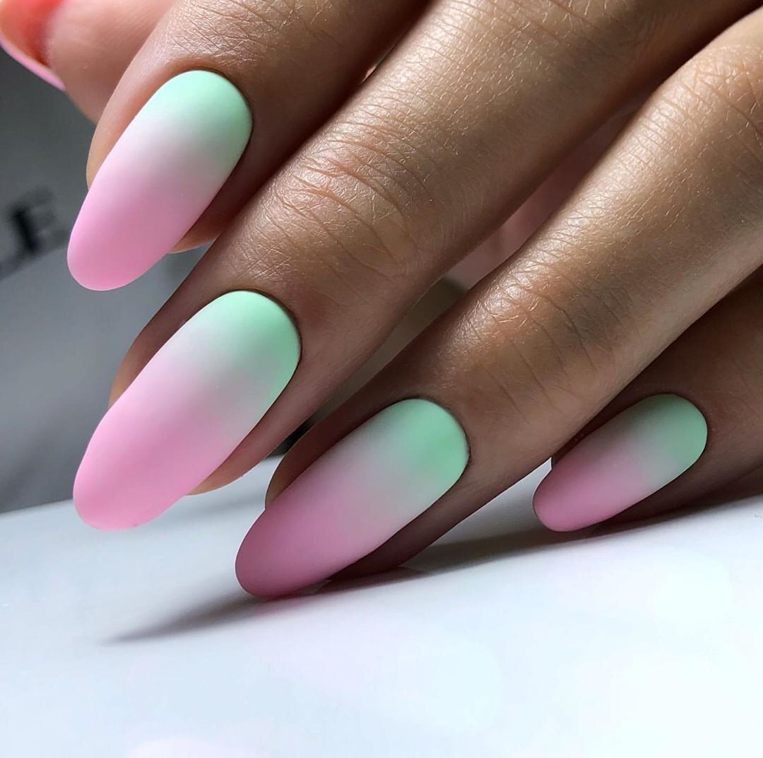 Как я делаю градиент? 1. На базовое покрытие наношу гель-лаки и делаю грязный первый слой градиента. Секретный секрет: 1. Сейчас могу взять цвет по светлее в качестве подложки и просто накрасить без градиента (Здесь важно просто создать подложку для плотности). Сушу 1 минуту в лампе.