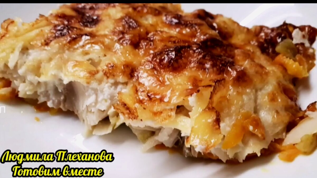 Минтай на "подушке" и под "одеялом" - это вкусный и полезный ужин за полчаса