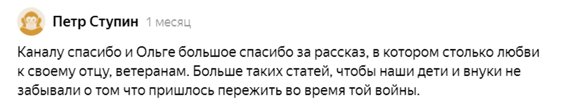 Спасибо Вам огромное за этот рассказ... Сложные чувства нахлынули, пока читала... Так уж сложилось, что мои деды не воевали в ВОВ, потому что один дед ещё с первой мировой пришёл инвалидом без правой руки, и на левой всего два пальца осталось. Второй дед потерял ногу в 1937 и тоже не воевал... А отец мой был с 1932 г., мама с 1926, и ужасы войны помнили по оккупации. И главная фраза моей мамы была — "Только бы не было войны". И я сейчас скажу — только бы не было войны! И ни одно поколение не должно забыть, какой ценой досталась наша Великая Победа. А всякие "коли с Уренгоя" — это мусор, который река времени унесёт, и никто об этом не вспомнит.