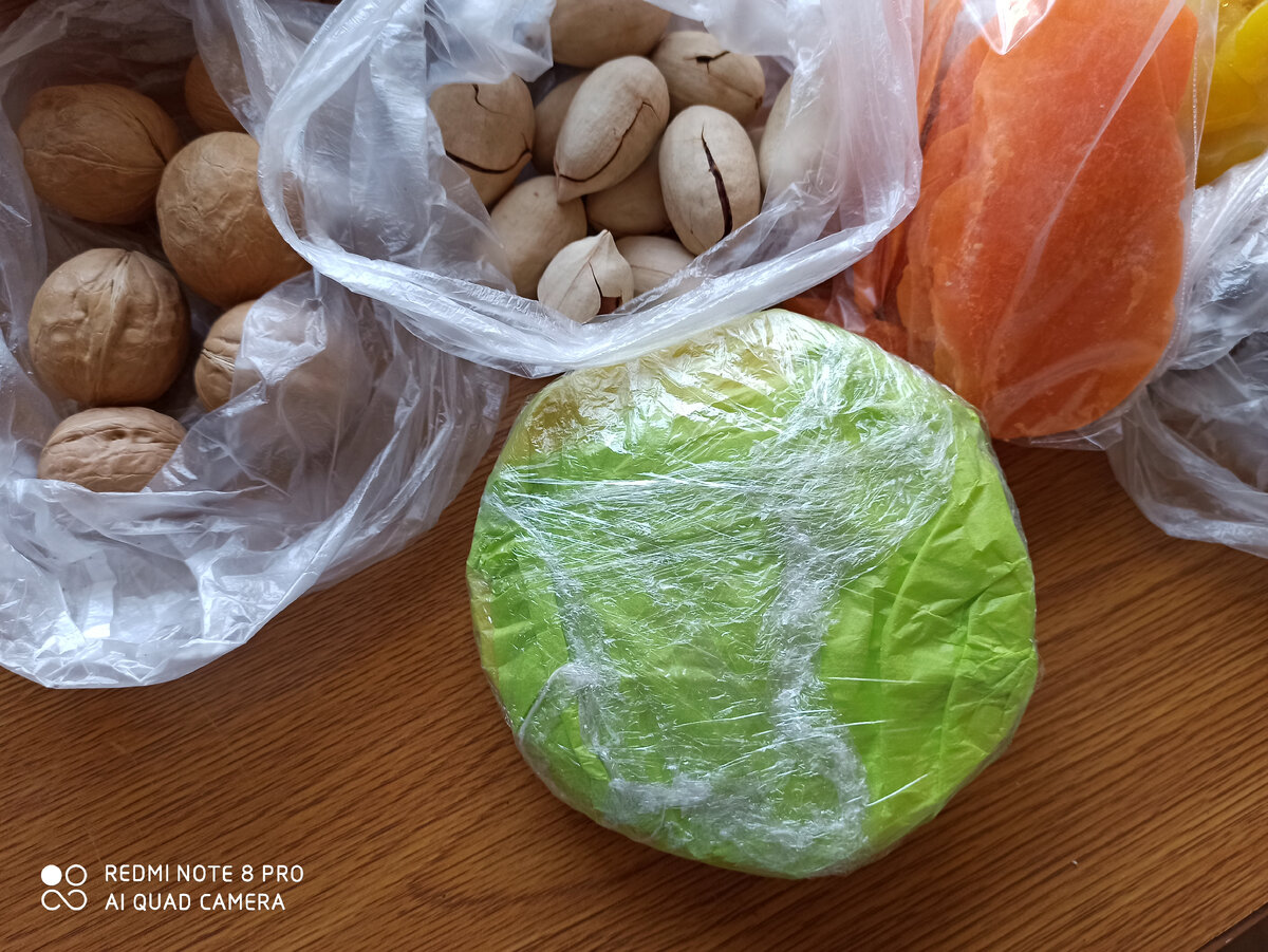 Оригинальный букет, который соберут даже дети за 15-20 минут. Берём пеноплекс или пенопласт вырезаем круг. Заворачиваем в тишью и в пищевую пленку. Укладываем в кружку, или в любую другую подходящую ёмкость. Далее совсем просто. Насаживаем орехи и сухофрукты на зубочистки. У меня здесь: киви, лимончики, груша, кумкват, ананасы, манго, из которого легко сворачивается розочка, клубника, финики, инжир и орехи. Вот такой букет получается.