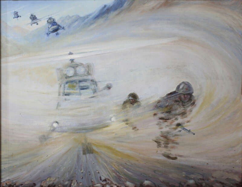 Советская война в Афганистане длилась долго -- с 1979 по 1989 год. Обсудим искусствоведчески: по объективным причинам она не ознаменовалась созданием монументальных полотен, воспевающих победы нашего оружия.