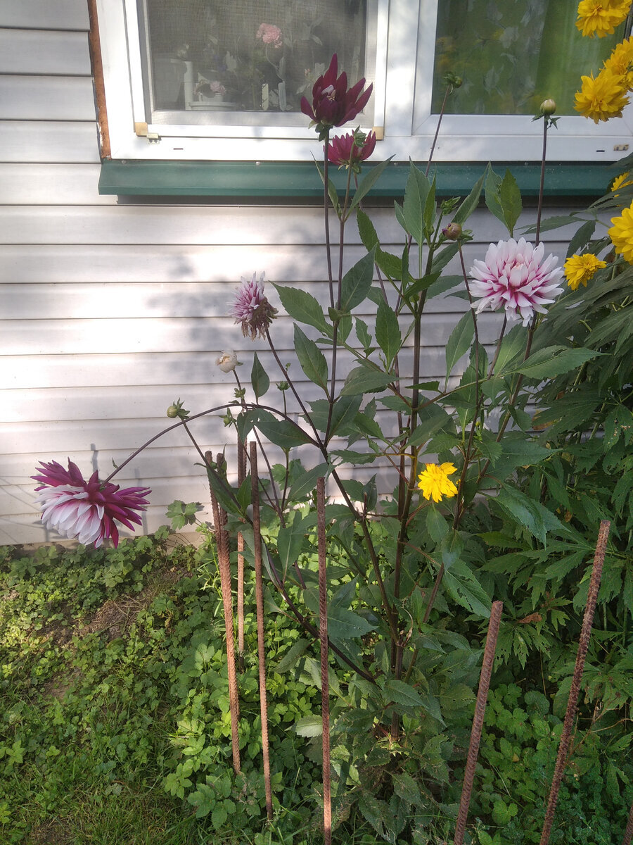 Летом 2020 год я впервые задумала посадить георгин. В феврале поехала в надёжный магазин, час стояла перед стеллажом с георгинами - и выбрала два сорта: красно-белый и жёлтый. Поскольку георгины прежде я не сажала, естественно, были сомнения - мол, вряд ли красно-белый георгин расцветёт по картинке на упаковке - прям двумя цветами одновременно. Расцвёл. Ух, я и не думала, что они такие красивые! Однако куст был не очень густой. А куст жёлтого георгина как раз был густой. Всю осень, зиму и весну я размышляла - как бы сделать, чтоб красно-белый рос погуще, и в конце весны наткнулась на статейку о прищипывании георгинов. Идея о прищипывании пеларгоний, денежного дерева, бегоний, традесканций и колеусов меня нисколько не удивляет - отщипываешь пальцами верхушку, да и всё. А вот прищипывание такого массивного растения, как георгин, просто ошарашило. Ну да ладно, чего рассуждать - тут либо пробовать, либо нет. Отщипнула, значит, 5 июля 2021 года. И вот что получилось в итоге: Короче, на