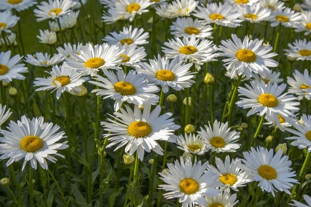 Каждый раз, возвращаясь с дачи с букетом крупных свежих ромашек, вижу, как он притягивает взгляды людей. Давно выращиваю этот многолетний цветок – крупноцветную ромашку, и люблю его за обильное цветение с июля до конца августа (при ранней обрезке он может цвести вторично в сентябре-октябре). Многообразие названий и видов Подкупает его неприхотливость к почвам и удивительная отзывчивость на внесение удобрений и полив – цветки становятся сразу крупные, до 8–12 см в диаметре. Нивяник имеет много народных названий: златоцвет, или хризантема млечновидная, ромашка исполинская, поповник. В мире насчитывается до 200 видов нивяника, и происходят они из разных мест – одни из южной Европы, другие из Азии, третьи – из Пиренеев. Да и внешне выглядят по-разному: есть ромашки белые с желтой серединкой, есть белые с язычковыми широкими лепестками, а есть полумахровые с чисто-белыми цветками. И все они необыкновенно декоративны в саду. Посадка У меня растут невысокие (60–80 см) кусты нивяника вдоль дор