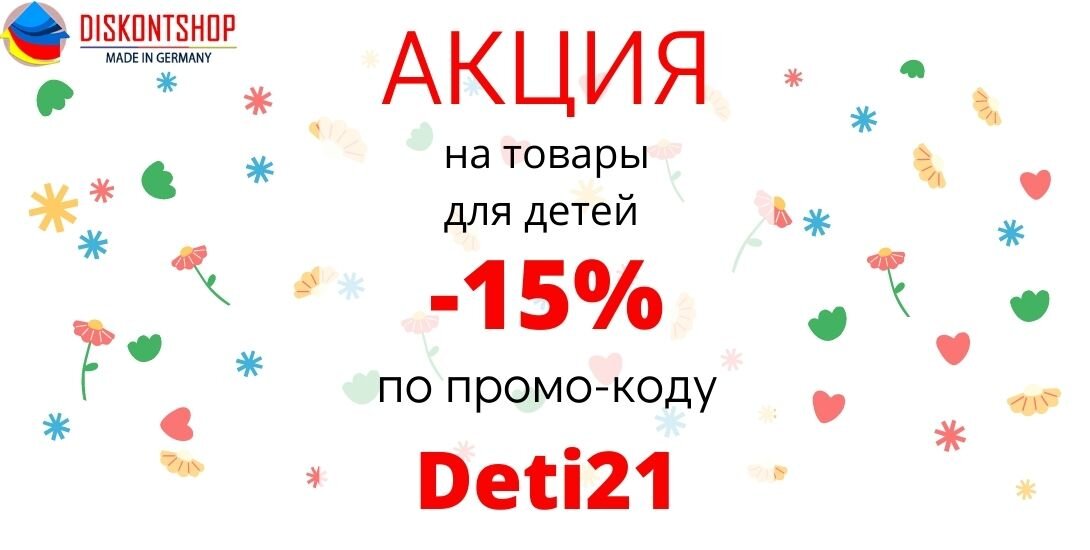 Уважаемые покупатели! Поздравляем вас с началом нового школьного сезона! Начиная с сегодня и до 1-го сентября включительно: скидка 15% на любые детские товары! Напоминаем, что Вы можете бесплатно скачать отличный гид по детским витаминам: https://diskontsp.ru/wa-data/public/site/pdf/gid.pdf Ваш купон: DETI21 Желаем Вам удачных покупок! С Уважением, Команда Diskontshop.eu
