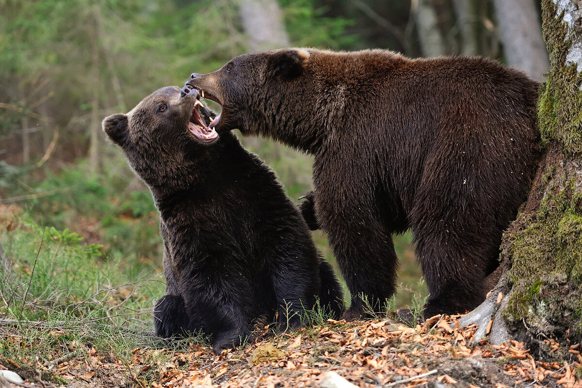 Косолапый великан уважаем среди всего лесного народа. Мощь, рост, вес и характер «мягко» намекают на то, что лучше медведя не обижать. Да и желающих потягаться с бурым не слишком-то и много! Впрочем, всеобщее уважение и почтение ещё не говорит о том, что наш герой вовсе не имеет недостатков. Они есть, и их немало. Если в лесу встретятся два бурых самца, они обязательно начнут выяснять отношения. Но это будет нечто похожее на то, как некоторые личности воюют за место в общественном транспорте — побубнели друг на друга, продемонстрировали воспитание, но каждый остался при своём. И совсем иначе дела медведей обстоят в брачный период. На одну и ту же «барышню» может претендовать сразу несколько ловеласов. Каждый будет идти до победного конца, ведь им есть за что бороться! Психика медведя не выносит резких звуков. На пару с физиологией, кстати. Медведь может мирно собирать малину близ двуногих собирателей. И пока никто его не видит — всё хорошо. Но заметив величавого зверя, реакция в больши