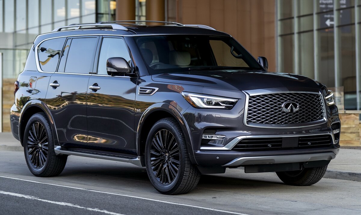 Infiniti QX80 Один из самых проходимых японских внедорожников. При длине 5340 мм, ширине 2030, он имеет дорожный просвет 234 мм. Массивная машина разгоняется до 100 км/ч за 7,5 секунд, при этом его максимальная скорость 210 км/ч. Просторный роскошный салон, элегантный экстерьер не оставит равнодушным покупателя для подтверждения своего статуса. Управляемость у него хорошая, на поворотах даже при скорости 140 км/ нет крена. Новый внедорожник Infiniti QX80 стоит от 4500000 до 7000000 рублей. Расход топлива л./100км По городу: 20.6 По трассе: 11.0 Средний: 14.5 Преимущества: Недостатки: