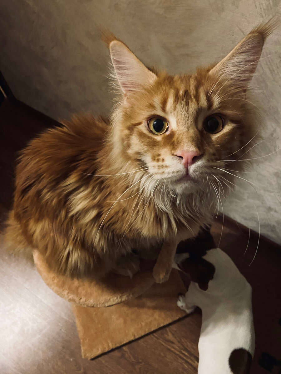 Мейн-кун – супер охотник. Его натура требует мясо и рыбу, а овощи и траву в природе он употребляет только для того чтобы очистить организм.