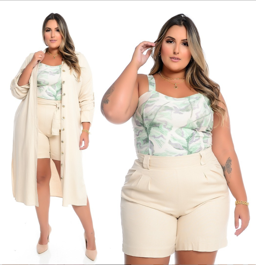 - Эффектный костюм с шортами самого светлого оттенка кремового цвета. Шорты длиной до середины бедра с высокой посадкой. Второй элемент костюма – длинная рубашка. Рубашка прямого силуэта длиной ниже колена. Модель на пуговицах с боковыми разрезами в боковых швах. К шортам надеть эффектный топ-корсет, который плотно облегает фигуру. Топ сшит из светлой ткани с акварельным принтом.