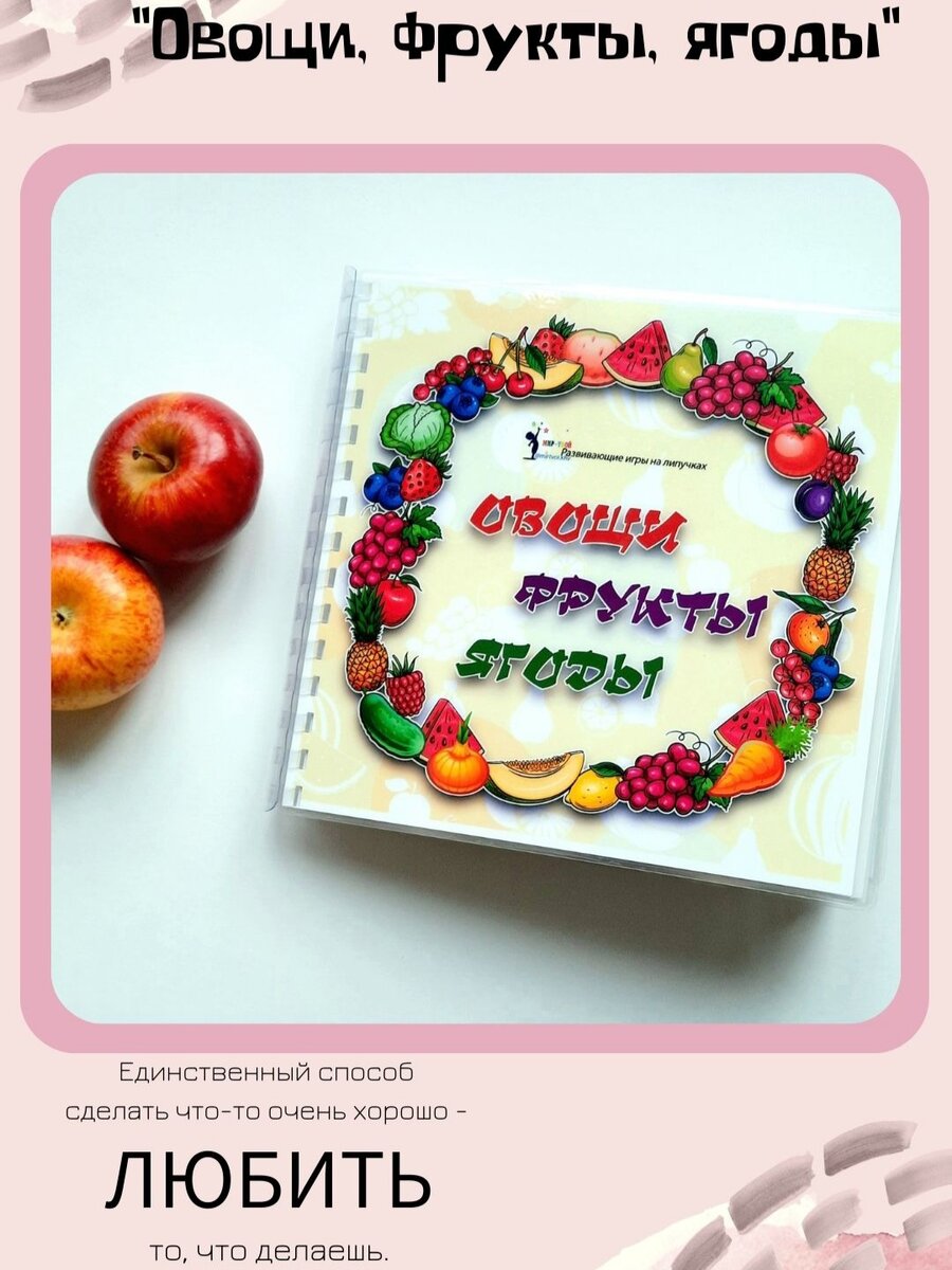 Яркое, сочное и очень замечательное наглядно-дидактическое пособие "Овощи, фрукты, ягоды" использую для занятий как с собственным сыном, так и в работе с детьми с нарушениями в развитии. Первые три разворота направлены на умение наименовывать, на различение категорий. Учимся находить тень. Игру "Найди, где, чья долька?" - для говорящих детей, можно попросить не только найти и провести линию маркером к дольке, но порассуждать, а все ли тут фрукты. Фрагмент занятия с ребенком на работе. Игра "Что растет на грядке, дереве и кусте?" Здесь акцент сделан на то, что есть овощи которые растут в земле, а есть те, что растут на грядке, на кусте. Что фрукты растут на дереве, а ягоды на кустарниках. Фрагмент занятия с сыном. Очень замечательная игра "Найди лишний в ряду" вроде бы нашел, зачеркнул, а нет... Мы проговариваем название каждого овоща или фрукта, просим ребенка назвать все одним словом, а затем спрашиваем о точно ли все ... например, фрукты. И ребенок должен подумать и ответить. Выгля