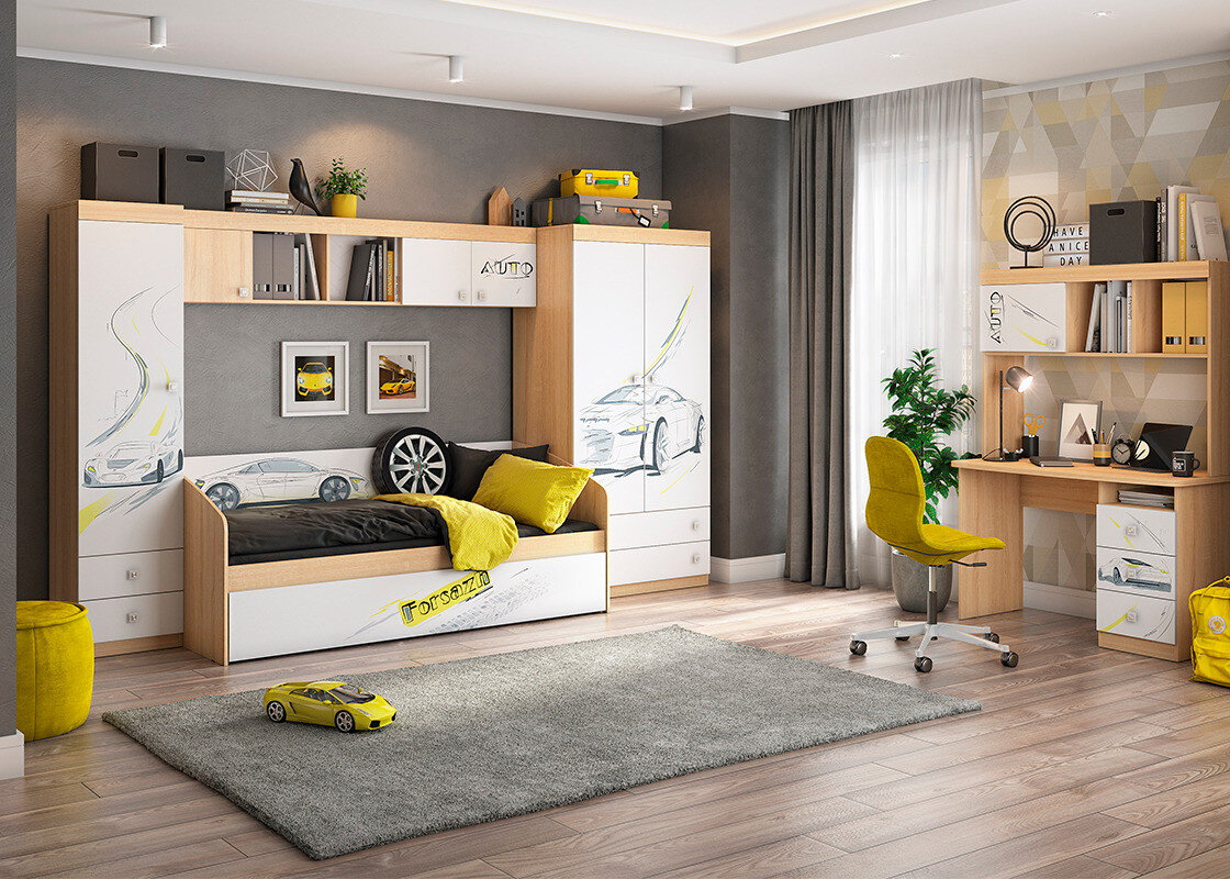 НЕДЕТСКАЯ ДЕТСКАЯ Готов и сдан на реализацию проект комнаты для юноши в 3-комнатной квартире Санкт-Петербурга, метро Петроградская Тариф - стандарт Стиль - современный с элементами лофта Цветовая палитра - пастель, черный и оранжевый акцент В комнате мы предусмотрели вместительную систему хранения для одежды и учебных принадлежностей. За счёт белого цвета и зеркальных дверей огромный шкаф не бросается в глаза. В углу получилось уютное место для чтения или просмотра фильмов с ПК Освещение продумано под каждую зону: учебы, сна, развлечений. Светильники выполнены из простых форм, но смотрятся стильно. Юноши обычно не склонны к декоративным мелочам, но совсем без них интерьер был бы незавершенным. Лофт позволил нам добавить имитацию кирпичной кладки на стене. А также оригинальный журнальный столик и постеры. Перегородка из деревянных реек защищает спальную зону от входной двери и выглядит красиво Что вам больше всего понравилось в проекте?