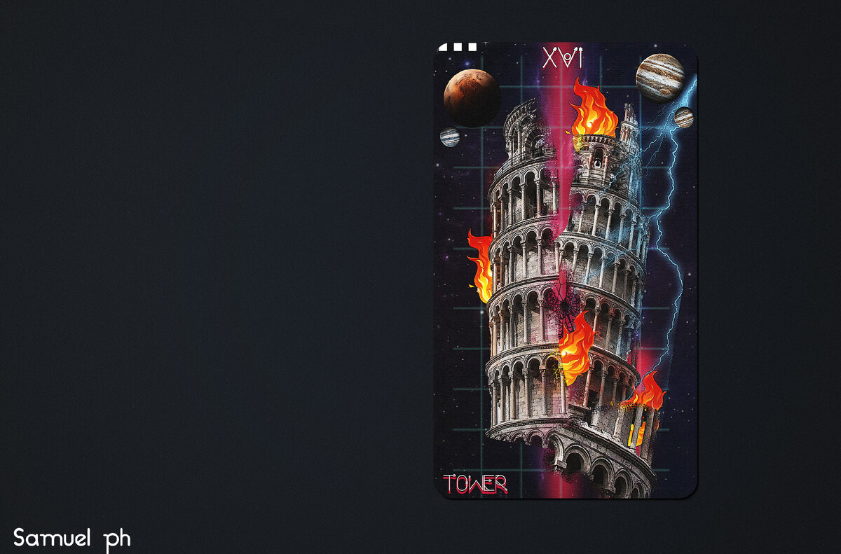 Время все таки пришло и я показываю процесс коллажирования или сбора своей карты Таро Башня в фотошопе. К слову всего в колоде 78 карт, так что на одну я продвинулся в изготовлении своей колоды. Процесс весь занял у меня около 52 минут, я имею ввиду именно саму работу в фотошопе. Для этого нам необходимо подобрать сам исходник башни у меня это Пизанская башня, которую я разрезал на куски и собрать много разных деталей. Предложи, какую карту сделать дальше Остается только дойти до типографии и распечатать эту карту, надеюсь вам было тоже интересно и вы прикоснулись к замечательному процессу творения. Надеюсь я вам мотивировал и самих отправиться в фотошоп))