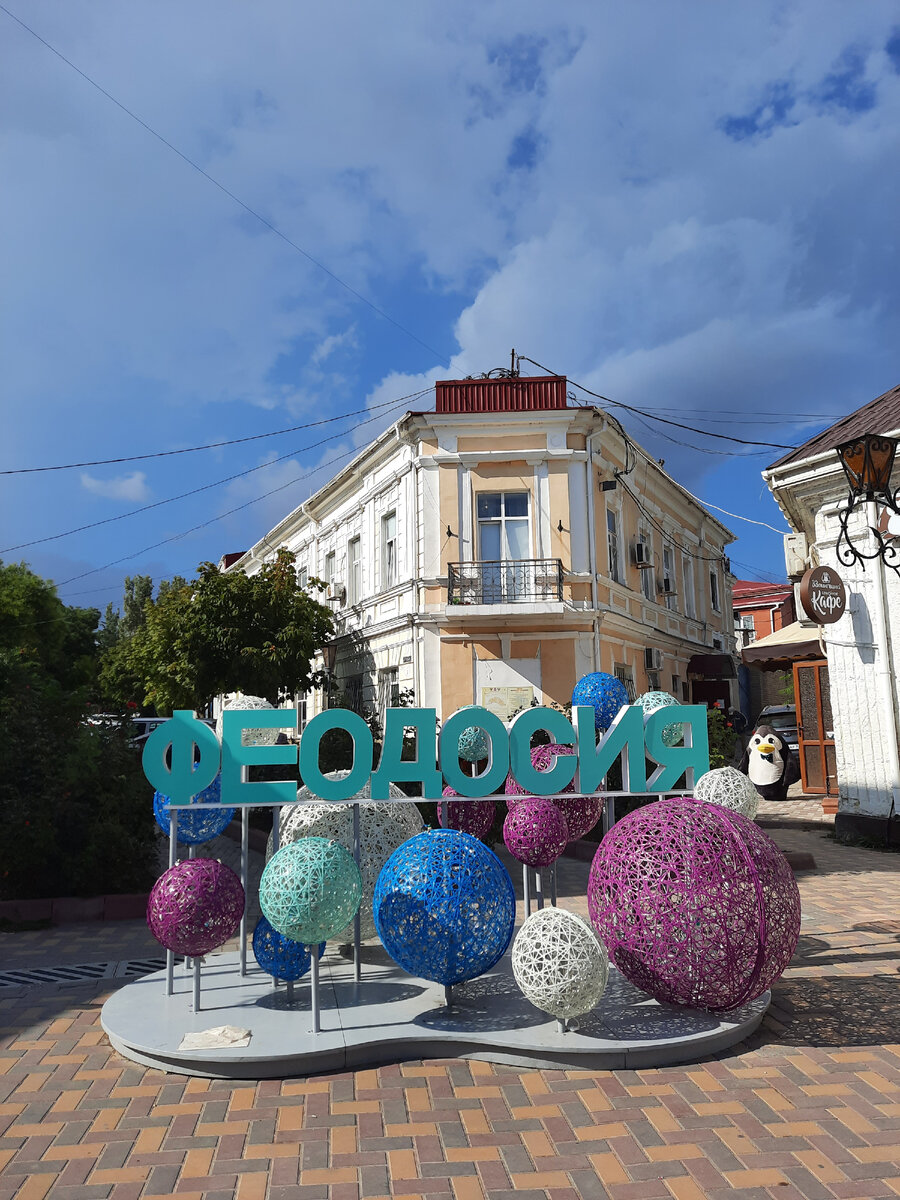 Утром опять долго плавала. Не там где вчера. И в отель совсем другой дорогой шла, но про это потом расскажу Сейчас о Феодосии. С обеда решила поехать туда. Почитала о ней ещё дома до поездки. Карту посмотрела. Села на автобус на автостоянке в Коктебеле и доехала за 47 рублей В Феодосии конечная автобусов находится прямо у городского кладбища. Правда это старинный погост. И там храм Всех Святых новый на месте разрушенного . Ну и автовокзал и рынок там тоже. Посмотрев всё это, начала усиленно интересоваться у людей в какой стороне море и где улица Галерейная . Вообще лучше выходить на предпоследний остановке автобуса. На Советской улице. Перпендикулярно ей идёт эта Галерейная. А на ней много интересного. И идёт она прямо к набережной. Красивая улица. Пешеходная. Музыка играет. И на соседних улочках есть симпатичные места. То, что я до конечной доехала - не плохо. Пока искала Галерейную улицу, много красивых домиков видела . Такой уютной сразу мне Феодосия показалась с этими не