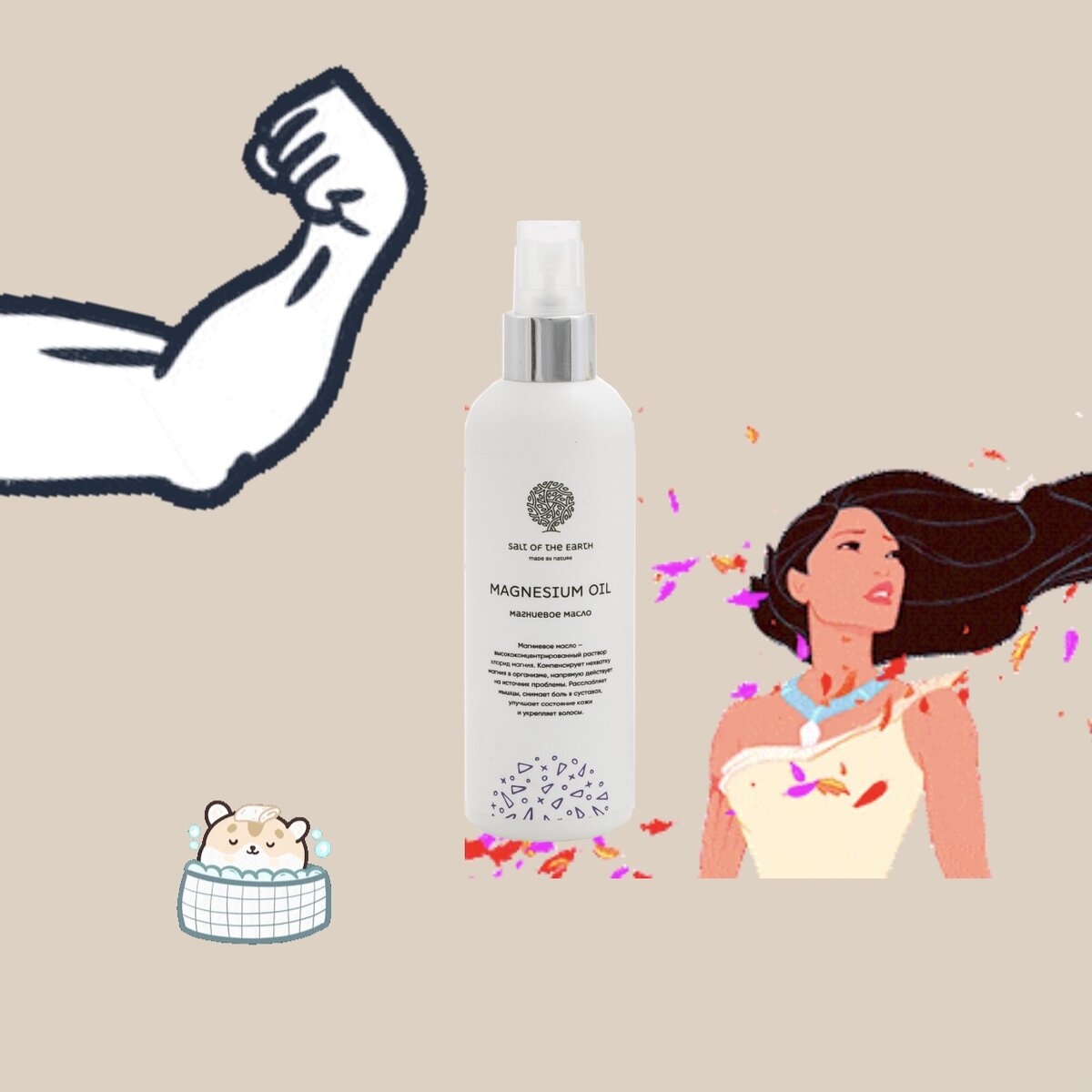 Средство для всего тела только лишь с одним компонентом в составе. Магний – один из элементов, который не вырабатывается нашим организмом, но крайне важен для него. Магниевая (английская) соль использовалась в Европе для лечения и профилактики различных заболеваний еще до начала 19-го века. Так что данные процедуры проверены временем, но упакованы на новый лад. Магниевое масло – интересная вещица, которую до этого я никогда не встречала. В составе только хлорид магния и вода. Тогда при чем тут масло? Из-за высокой концентрации соли данный раствор ощущается маслянистым на коже. Поэтому и называется средство «магниевое масло». Несмотря на свое название, раствор быстро впитывается и не оставляет жирных следов на одежде. Магниевое масло обладает широким спектром полезного действия: Я наношу данное средство на кожу головы перед мытьем раз в 1-2 недели на 15 минут. Мои вьющиеся волосы после данной процедуры не такие непослушные, более прямые и рассыпчатые. Мне кажется, они даже стали гуще и