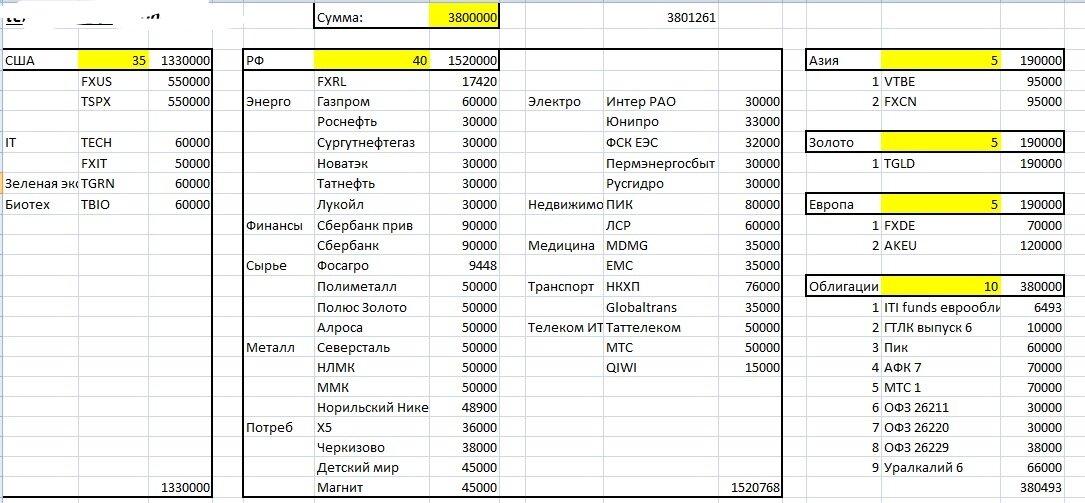 Цель - пассивный доход. Срок - около 7-8 лет. Всего планируется инвестировать в 1 год около 3,8 млн рублей.