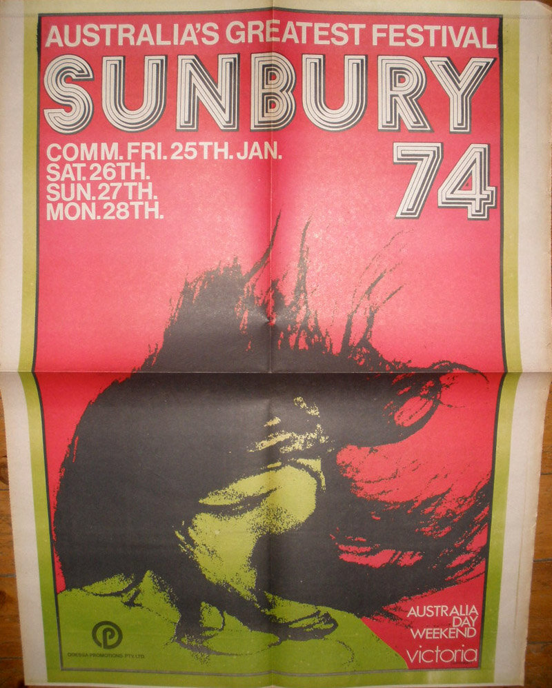 Поп-фестиваль в Санбери проходил с 1972 по 1975 год, и многие считали его австралийским аналогом Вудстока (Санбери - небольшой город в 40 километрах от Мельбурна). Фестиваль проходил на частной ферме площадью 620 акров (2,5 км2) между Санбери и Диггерс-Рест, Виктория. Фестиваль посещали от 25 до 30 тысяч человек. Цена входного билета на день равнялась пяти долларам (австралийских, наверняка).