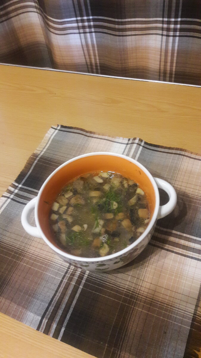 Безусловно, самые вкусные грибные супы получаются из «благородных» грибов: маслята, белые, лесные. У меня в морозилке есть немного, но что-то «жаба задавила». Я их лучше пожарю с картошкой. Так что взяла обычные «магазинные» шампиньоны. Основа – куриный бульон. Взяла один литр бульона. 200 грамм шампиньонов. Мелко порезала, пожарила на сковородке на смеси растительного и сливочного масел. У меня есть книга с рецептами Джулии Чайлд. Так что жарила по всем правилам. Их немного: грибы должны быть сухими и не должны «дружить» на сковородке. Масло на сковороде нагрела. Вначале на поверхности образуется пена. Как пена спадёт и масло начнёт слегка дымиться, закидываю грибы. 200 грамм я обжаривала в два захода. Цитирую Джулия Чайлд: Встряхивайте сотейник 4-5 минут. Во время обжаривания грибы поначалу впитают масло, но через 2-3 минуты жир выступит на поверхности грибов, и они начнут подрумяниваться. Как только они слегка зарумянятся, снимите с огня. Я ей верю абсолютно. Уже много чего приготов