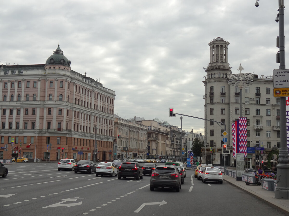 Тверская улица, по которой ежедневно мчится поток машин и проходят тысячи людей, не всегда была такой. Вот знакомый нам современный вид от выхода метро "Пушкинская", около Макдональдс. На месте жилого дома справа, выстроенного в 1944 году, и известного нам, как "Дом под юбкой" (Тверская, 17), возвышался величественный Храм Димитрия Солунского у Тверских ворот (снесен большевиками в 1933 году). В здании слева размещалось Всесоюзное театральное общество и знаменитый Дом актера. Но еще 100 лет назад это место выглядело иначе. И у нас есть возможность сравнить эти две фотографии. По Тверскому бульвару тогда ходили трамваи, спешили по своим делам москвичи, а по площади, носившей еще другое название, сновали разносчики мелкой снеди. Ну, а сейчас Москва празднует свой 874-й год рождения. Каждый год в начале сентября столица отмечает день города и наряжается в праздничное одеяние. Это уже не тот город, что был сто или двести лет назад. Москва сегодня - это город современный, н
