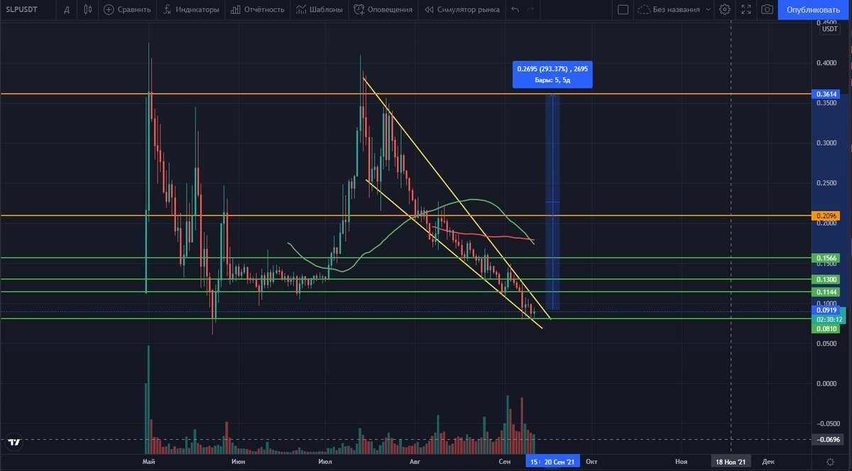 Монета SLP в скором времени может дать хороший профит в размере 290 - 293%.