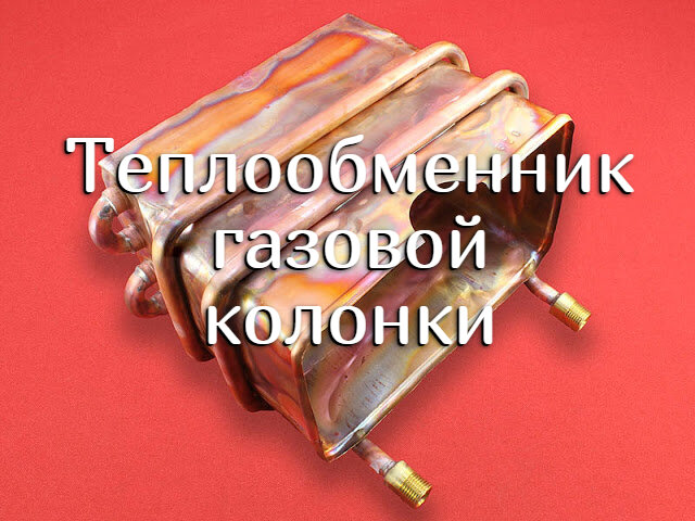 Теплообменник для любой газовой колонки с атмосферной горелкой построен фактически по одному шаблону. Центральной частью является змеевик из медных или стальных трубок с частым рядом поперечных пластин. В пластинах формируется трек для трубок и в месте соединения обеспечивается плотный контакт с помощью опрессовывания или пайки.