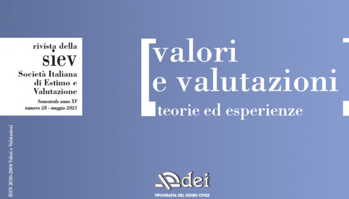 Уважаемые коллеги, доброго времени суток! Представляем вам итальянское научное издание Valori e Valutazioni. Журнал имеет третий квартиль, издается в Societa Italiana di Estimo e Valutazione (SIEV), находится в открытом доступе, его SJR за 2020 г. равен 0,273, электронный ISSN - 2036-2404, предметные области - Методы поддержки принятия решений, Законы, Финансы, Стратегия и менеджмент. Вот так выглядит обложка: Редактором является Джулио Мондини, контактные данные - giulio.mondini@unito.it, giulio.mondini@polito.it, e.fattinnanzi@libero.it. Журнал направлен на распространение культуры оценки в следующих тематических областях: - архитектура, гражданское строительство, окружающая среда и территория, - территориальное планирование, градостроительство и экология; - государственные и частные инвестиции в недвижимость и инфраструктуру; - рынок недвижимости и производство; - защита, укрепление и управление культурным и экологическим наследием; - финансы недвижимости. С этой целью он ан