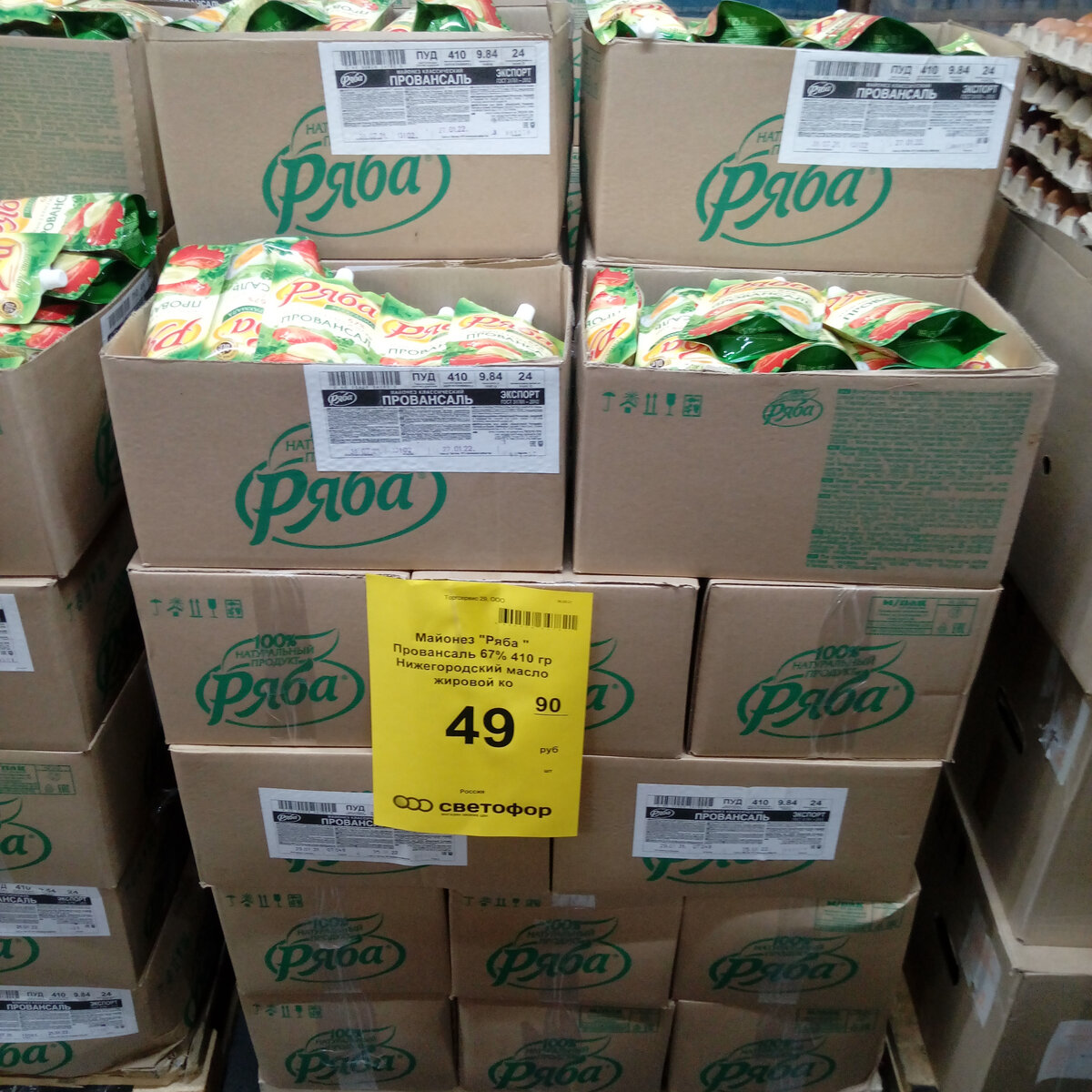 Очередной поход в магазин "Светофор" 13.09.2021, г. Архангельск, ул. Стрелковая 19. Показываю, что увидела на полках. Майонез Ряба провансаль 67%, 410 гр за 49,90 р. Майонез как майонез. Покупала, по вкусу неплох, по цене тоже претензий нет. Орех свиной традиционный, ООО Фабрика кухня Ладога, 1 кг за 229, 40 р Ни разу не пробовала, останавливают опасения, что же это за мясо такое. Снэки кнуты сырокопченые, МПК Атяшевский, 250 гр за 104 р. Ни разу не пробовала, хотя читала положительные отзывы, но пока останавливаю себя от порывов проверить эти отзывы. Рыба солено - сушеная путассу, ИП Жильцов, 200 гр за 109,10 р Не пробовала, на вид ничего особенного. Мороженое 48 копеек Клубничный десерт, ванна, ООО Фронери Рус, 800 мл за 120 рублей Пока не пробовала, но когда-нибудь это случится. Ценник очень даже симпатичный, да и "48 копеек" далеко не самое последнее мороженое в списках вкусных. Мороженое молочное Snickers Crips с карамелью и арахисом, в глазури с рисовыми шариками, 47 г за 25,20