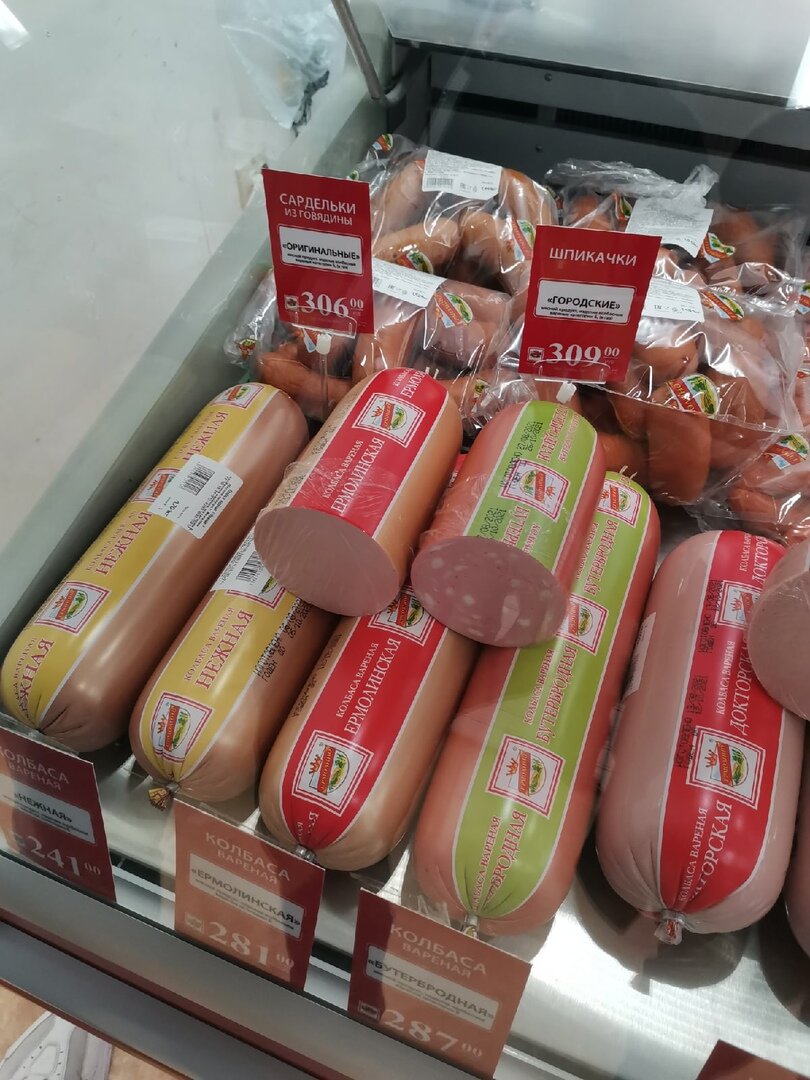 Я иногда забываю о том, что "Ермолино" - это магазин, где собраны разные продукты, потому что я привыкла, что он связан с полуфабрикатами. И в те моменты, когда я не нуждаюсь в их покупке, я, что вполне логично, просто прохожу мимо, а тут меня позвали сходить за компанию, потому как людям нужно было купить молочные продукты, а они почему-то приобретают их именно здесь. Пока мы стояли более 10 минут в очереди и рассчитывались, я успела рассмотреть все, что только было в магазине. И так мне захотелось обсудить с вами некоторые находки, что я решила написать данный обзор - про какие-то продукты я скажу свое мнение, про какие-то было бы здорово услышать чужое, поэтому давайте вместе поговорим про интересные продукты, находящиеся на полках "Ермолино". Все разное, не только из серии полуфабрикатов, поэтому нам предстоит присмотреться ко всему, что в теории мы могли бы купить. Первый продукт в моей подборке: Я не единожды уже упоминала о том, что из всего колбасного ассортимента мне обычно нр