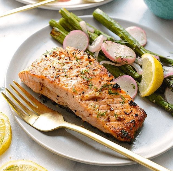 ❗Сухую рыбу (с малым содержанием жира) лучше запекать с подушкой из овощей, или соусом из сметаны.