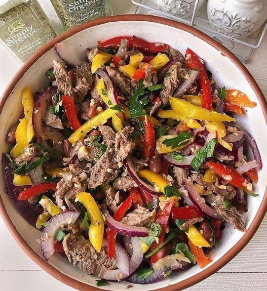 🔸Все ингредиенты смешиваем, солим, перчим, добавляем специи по вкусу, заправляем оливковым маслом и лимон.соком, перемешиваем и даём настояться 30 минут.