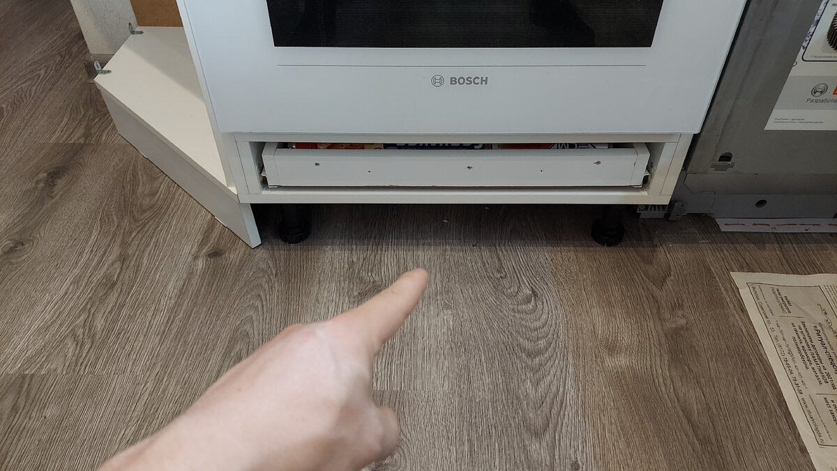 Так получилось, что я тесно сотрудничаю с изготовителями мебели под заказ, в частности, кухонь. Если спрашивать про подключение техники к электросетям, то они все хором говорят, что розетки мы ставим в самом низу на уровне цоколя. Так вести проводку проще и доступ к розетке есть всегда. Каждый раз спорю с "кухоньщиками", что это совсем неприемлемо и просто неудобно для конечного пользователя. Чтобы подключить/отключить плиту или посудомоечную машину, нужно лечь на пол, нащупать вилку и на ощупь подключить к розетке. Удобство здесь только для установщиков мебели, можно без штробления нарастить кабель питания, привязать розетку и спрятать всё это хозяйство внизу кухни за цоколем. Свою кухню по электрической схеме я планировал и подключал сам. Розетку для плиты я просто сделал в соседнем (левом) шкафчике. Эстетику пара розеток совсем не портит, так как за дверью и кухонными аксессуарами их совсем не видно. Духовой шкаф стоит рядом под варочной панелью, поэтому подключить его решил тоже о