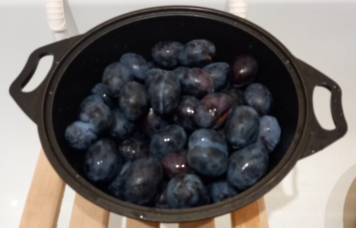 Этот год выдался урожайным на сливу. Настоящее нашествие. Мои дачники подкинули мне целый мешок спелых слив, с которыми что-то нужно срочно делать. Сколько смогла, заморозила, но морозильная камера не резиновая. Часть решила пустить на острый соус к мясу и всему такому прочему. Часто острый соус из слив называют "ткемали", но это не правильно. Ткемали - это сорт сливы и даже если следовать рецепту, то соус из другого сорта сливы "ткемали" называть не верно. Но название прижилось и мало кто уже обращает внимание на такие детали. Мой сорт называется "угорка" ("венгерка"). Темные плоды, которые отлично подходят для маринования и острых соусов. Сделав поправку на сорт сливы постараюсь следовать если не рецепту "ткемали" (специй аутентичных тоже не найдешь), то технологии приготовления Сливу помыла и загрузила в любимый казанок. Подойдет любая кастрюлька. Поместилось примерно 2 кг. Добавила стакан воды, чтобы слива не пригорела в первые минуты. Накрыла крышкой и оставила на медленном огне п