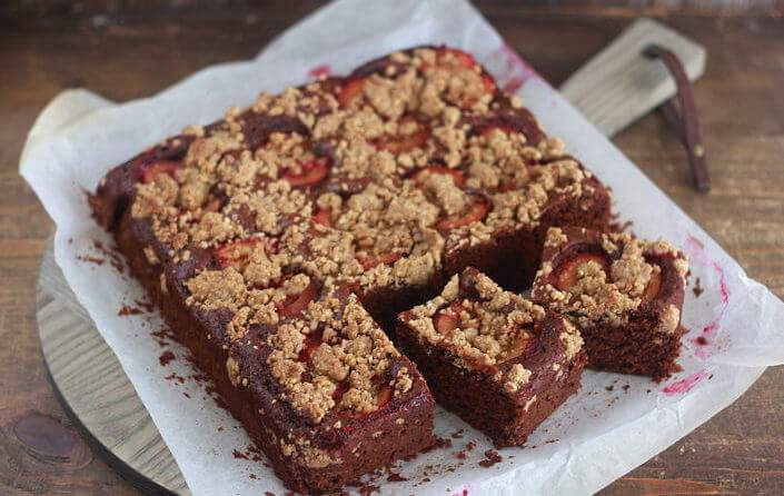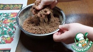 Хочу предложить Вам рецепт вкуснейшего пирога из песочной шоколадной крошки с нежной творожной начинкой со сливами. Готовится он очень быстро. Песочная шоколадная крошка получается рассыпчатой и приятно хрустящей, а начинка - нежной, с приятной сливовой кислинкой. Вам понравится!) Ингредиенты для «Шоколадно-творожный пирог со сливами»: Тесто Мука пшеничная / Мука — 170 г Масло сливочное(комнатной температуры) — 120 г Сахар — 80 г Разрыхлитель теста — 0,5 ч. л. Какао-порошок — 30 г Ванилин — 1/3 ч. л Начнём приготовление с песочного теста. Для начала смешаем все сухие ингредиенты. В миску просеиваем 170 г пшеничной муки. Добавляем 0,5 ч. л. разрыхлителя, 80 г сахара, 1/3 ч. л. ванилина и просеиваем 30 г какао-порошка. Всё хорошенько перемешиваем. Туда же отправляем 120 г сливочного масла комнатной температуры и растираем тесто в крошку. Выпекать буду в разъёмном кольце диаметром 23 см. Противень застелила пергаментной бумагой. Визуально делю песочную крошку на