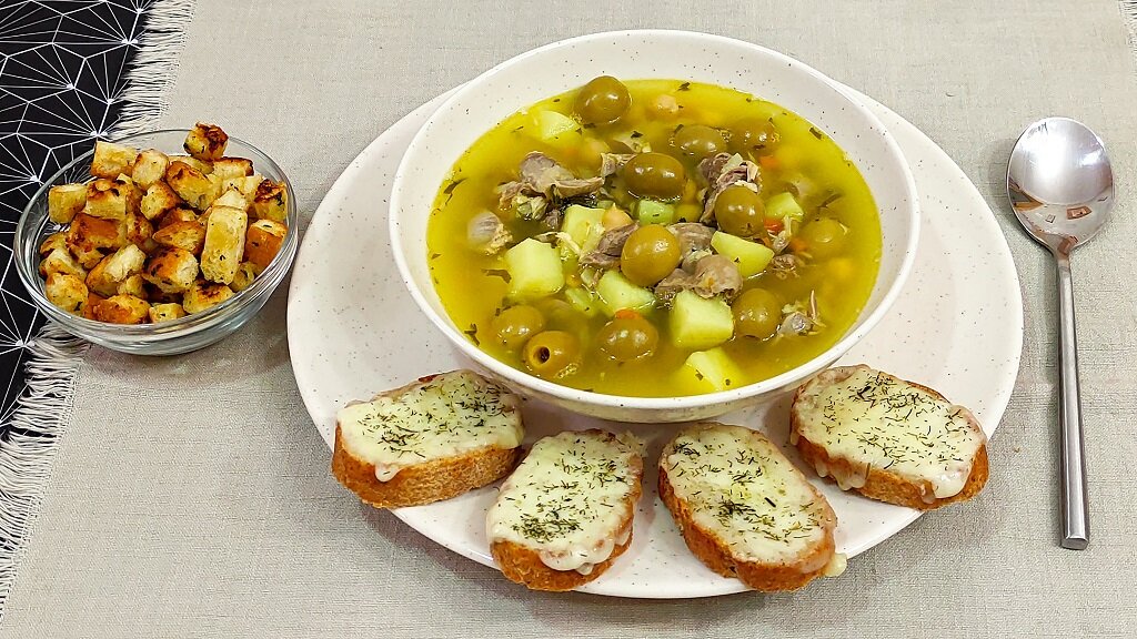 Надоел обычный суп? Приготовьте «балканскую чорбу». Чорба — это первое блюдо балканской кухни, которое получается очень вкусным, насыщенным и сытным.Сегодня покажем один из вариантов чорбы . Присоединяйтесь! И приятного аппетита! Ингредиенты : бульон куриный 3 литра куриные желудки 800 гр картофель 400гр морковь, лук репчатый по 100гр оливки 250 гр(консервированные без косточек) горох нут консервированный 300 гр вино белое 200 мл(сухое, полусухое) зелень по вкусу( у нас петрушка, зелёный лук) соль, перец по вкусу Ссылка на «Лёгкий КУРИНЫЙ БУЛЬОН, как основа для супов, соусов и других мясных и овощных блюд!» : ДРУЗЬЯ И ГОСТИ КАНАЛА!Будем рады видеть Вас у себя на канале БЛЮДА И РЕЦЕПТЫ ! Подписывайтесь и готовьте вместе с нами . Делитесь видео с друзьями и в соц . сетях. Нам важна Ваша обратная связь :)